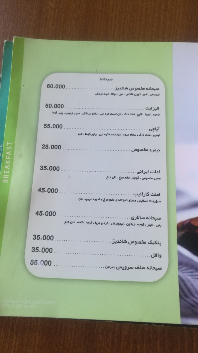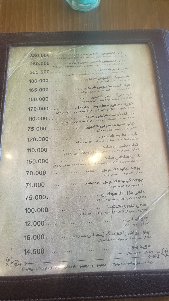 The menu at Shandiz Restaurant in Isfahan offers a delightful mix of traditional Iranian flavors that are sure to please any palate. Among the standout dishes, Kebab takes center stage, a must-try for any visitor. Its smoky, charred exterior and tender meat inside offer the perfect balance of flavor and texture. Alongside the classic Kebab, the کباب لقمه (Lamb Kebab) is another popular choice. This dish features perfectly seasoned lamb, skewered and grilled to perfection, making it a true representation of the rich, flavorful kebabs Iran is known for.